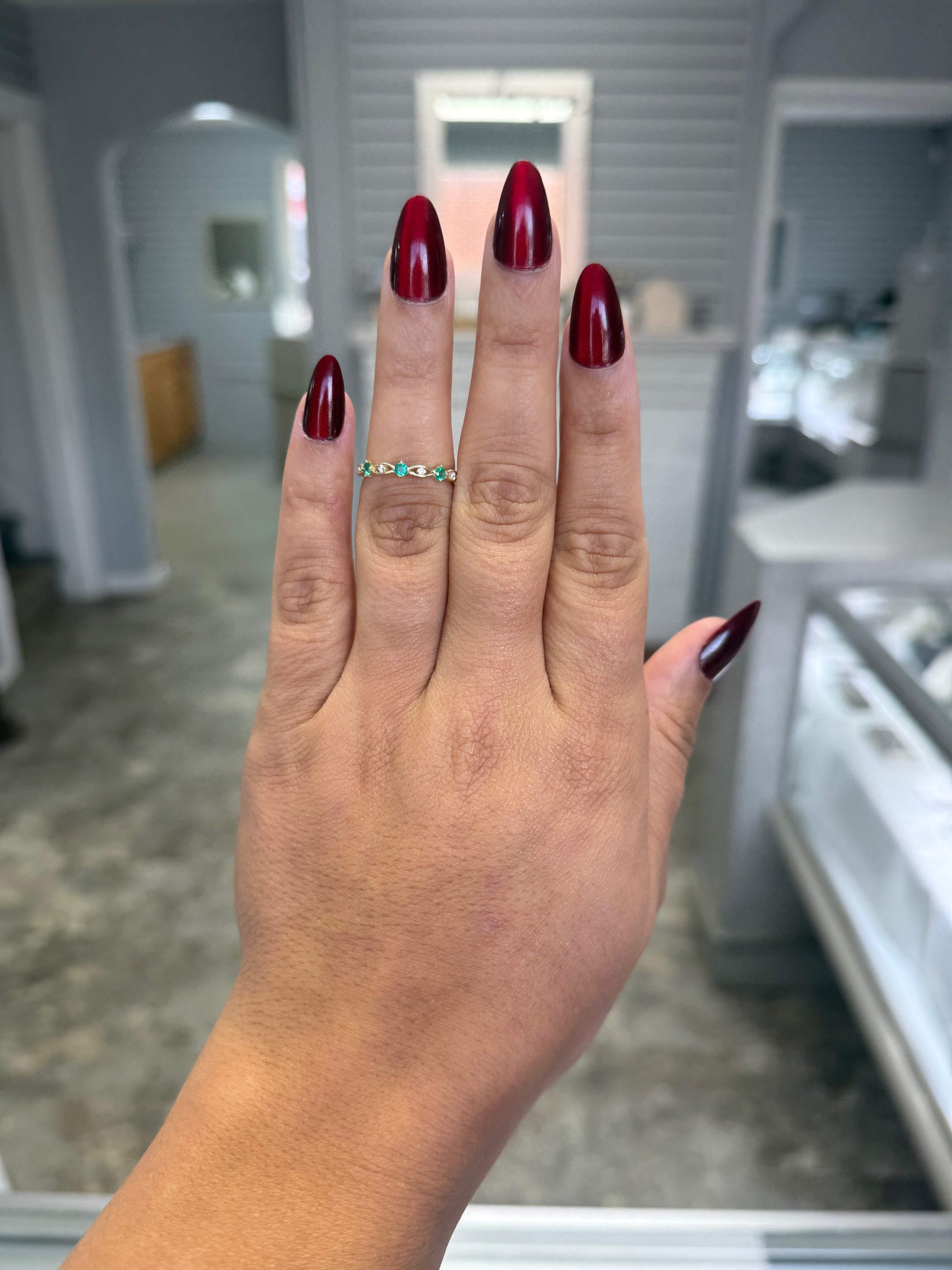 10k Yellow Gold Emerald & Diamond Accented Stackable Band