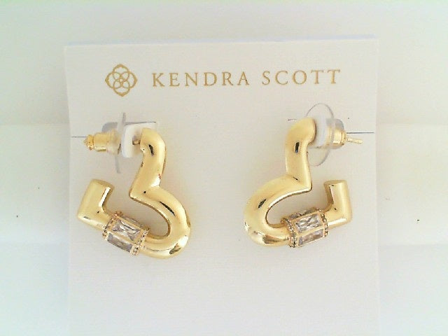 Goldtone Emery Heart Hoop Earrings W/ Wht Cz