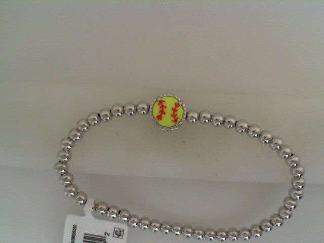 Softball Stretch Beaded Bracelet Rhodium Finish Chartreuse Magnst