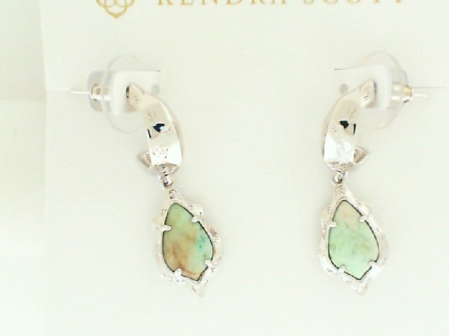 Adriana Scallop Frame Huggie Rhodium Finish Sea Green Chyscl
