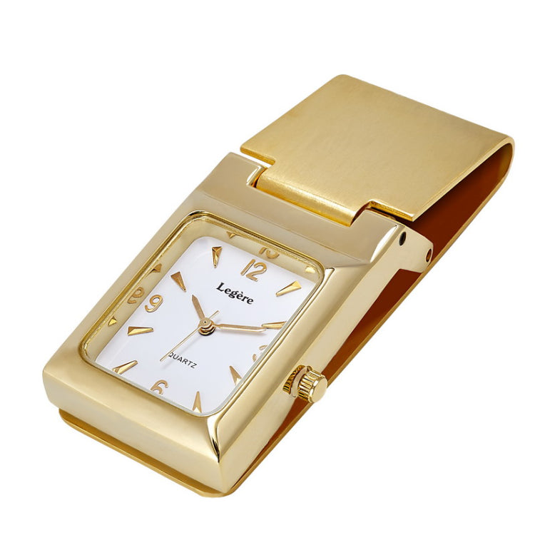 Gold Finish Square Face White Dial Hinged Watch Money Clip