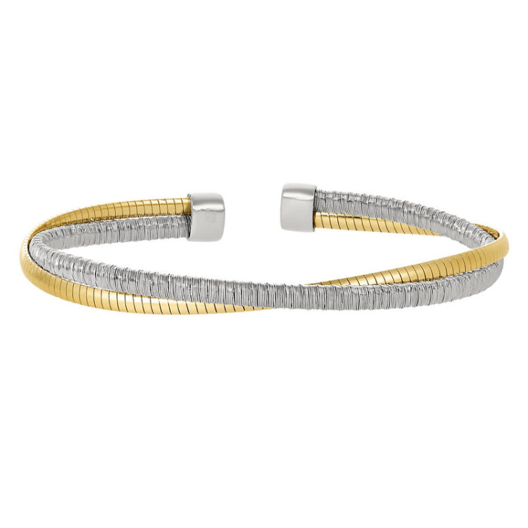 Rhodium finish sterling silver and gold finish omega twist cuff bracelet