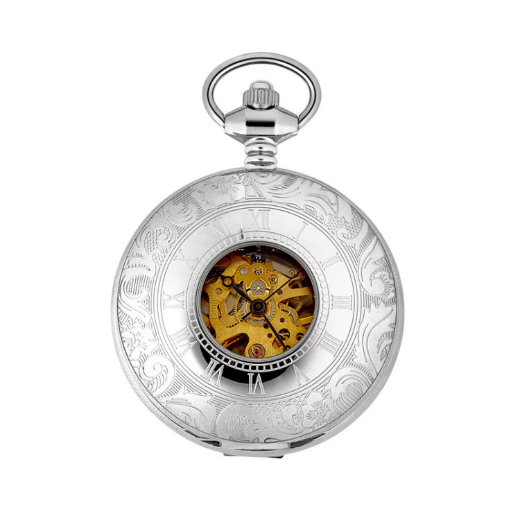 Stainless Steel Desk Stand Case Pocket Watch W/Gold Mechanics